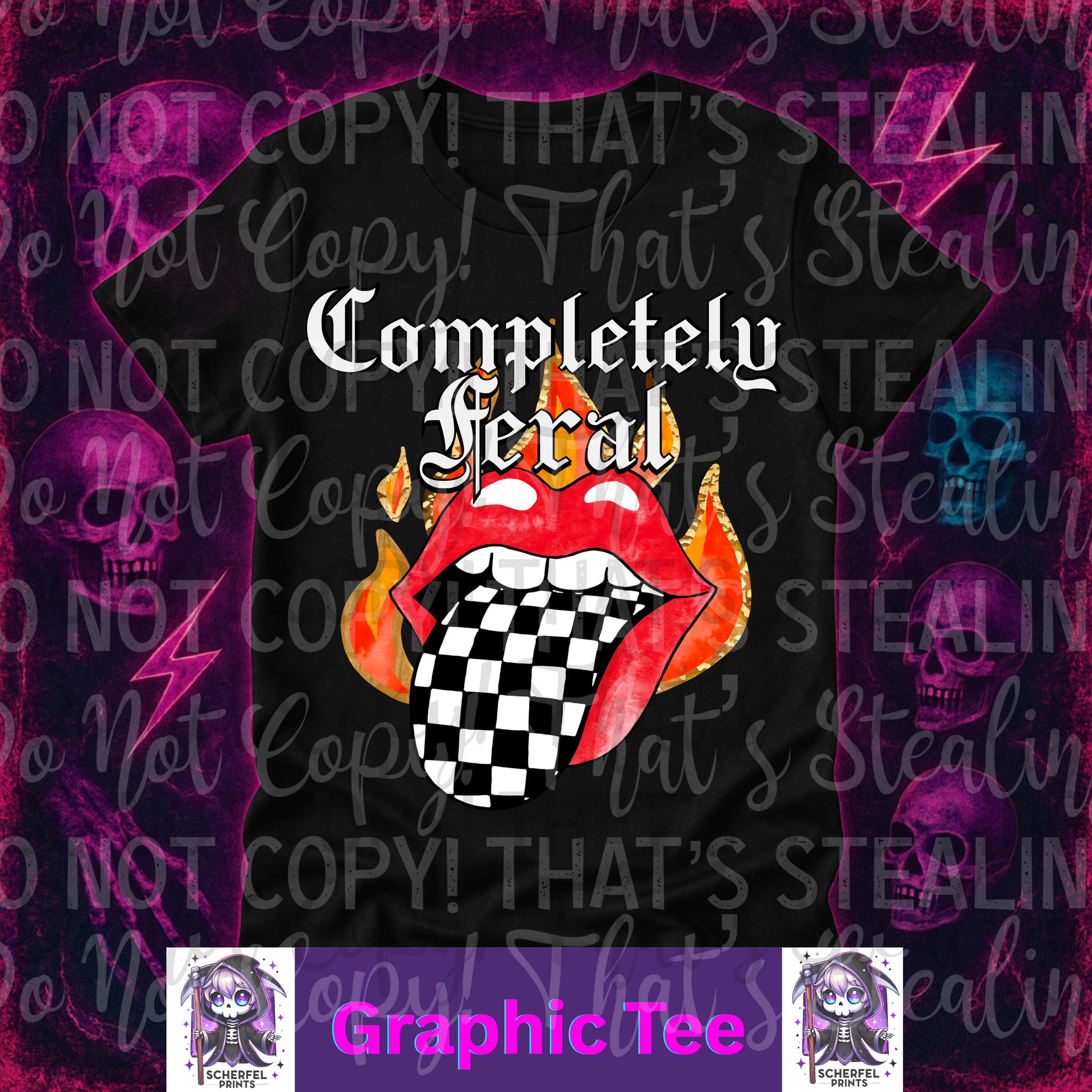 🔥 Vibrant flames + checkered tongue = instant attitude