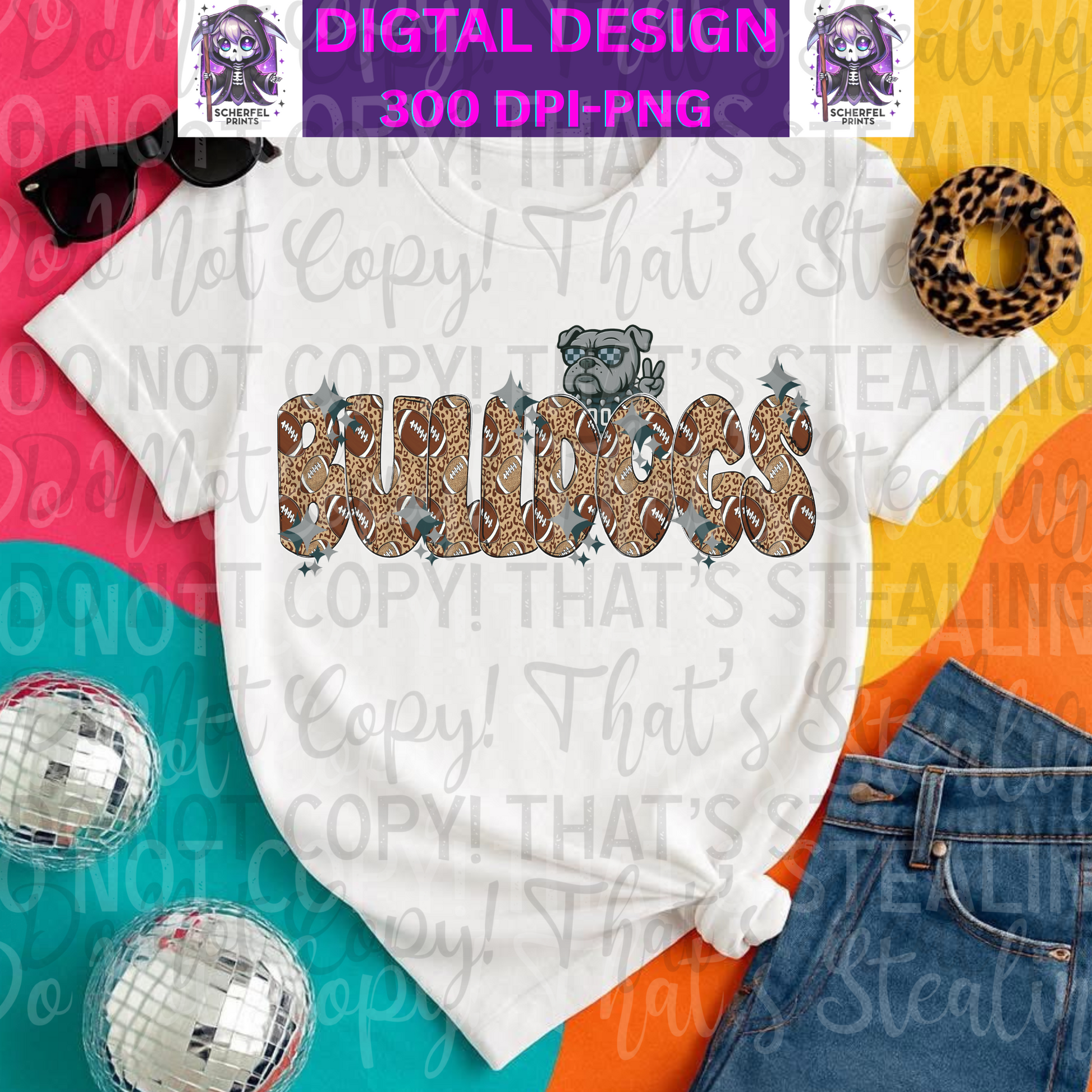 Get loud for your team with this high-resolution “BULLDOGS” PNG—featuring fierce leopard print lettering, sporty accents, and a peace-sign bulldog mascot that adds playful edge to your game-day gear.