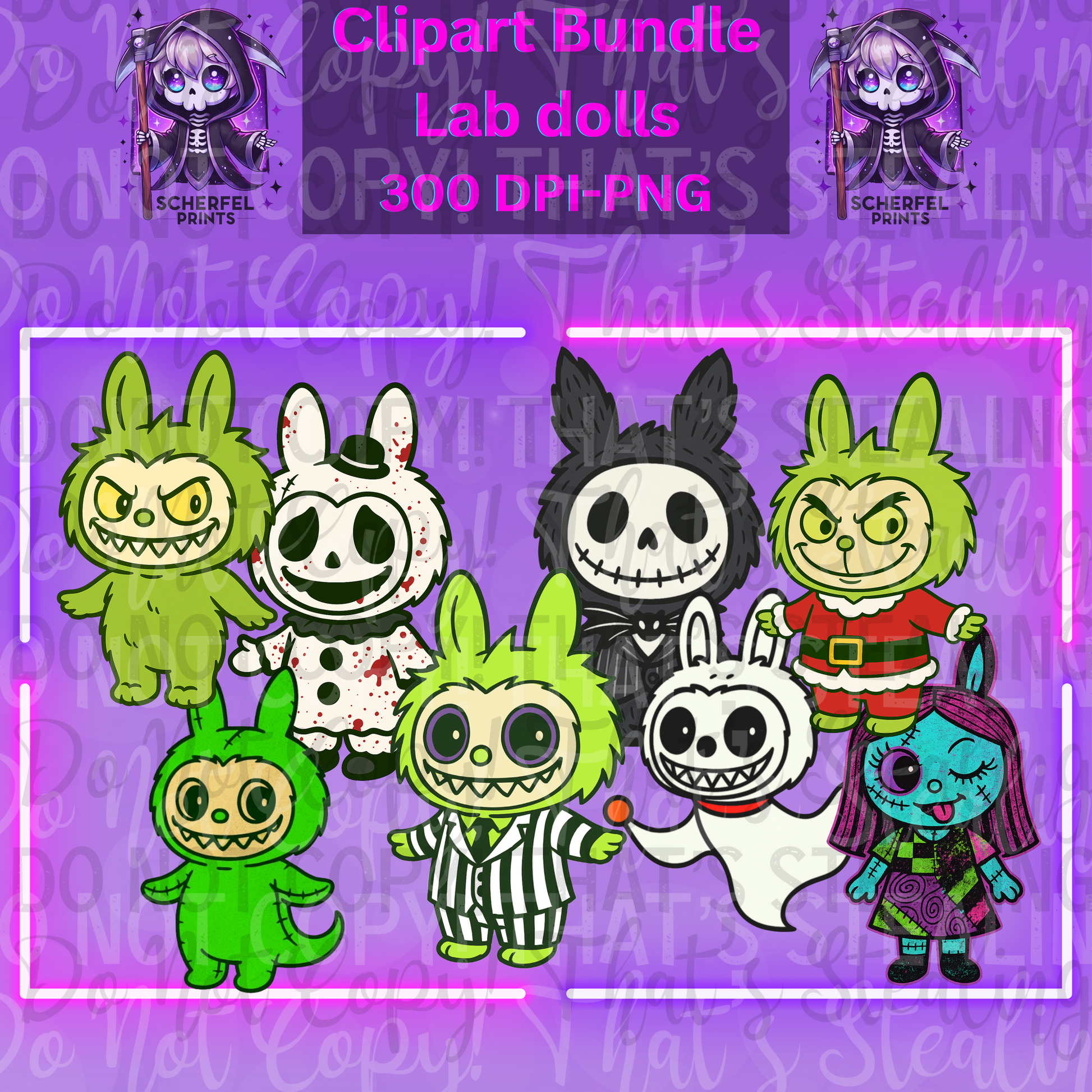 💀 Spooky Lab Dolls Clipart Bundle – 300 DPI PNG