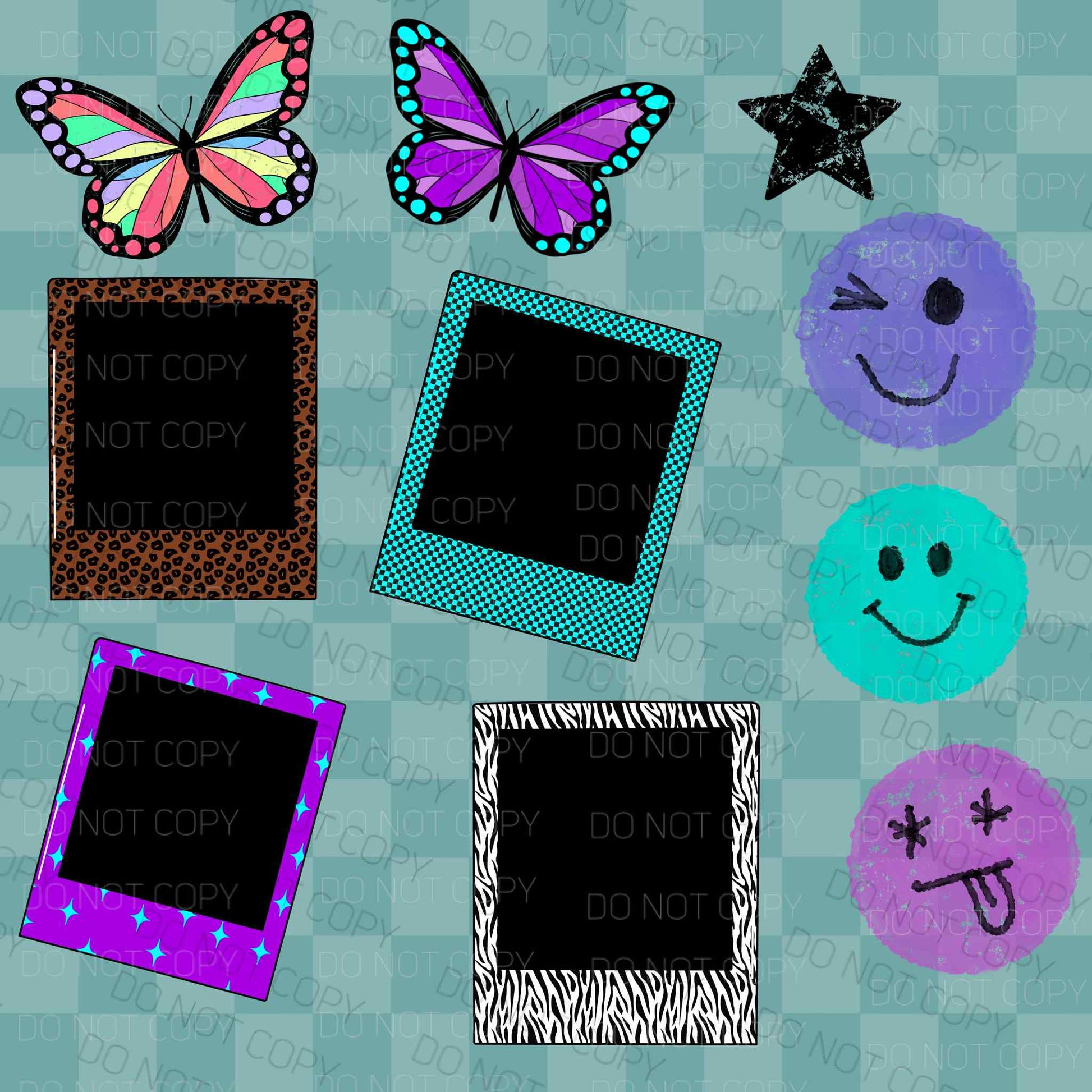 Seamless pattern motifs: butterflies, lightning bolts, stars, hearts, and cozy chaos