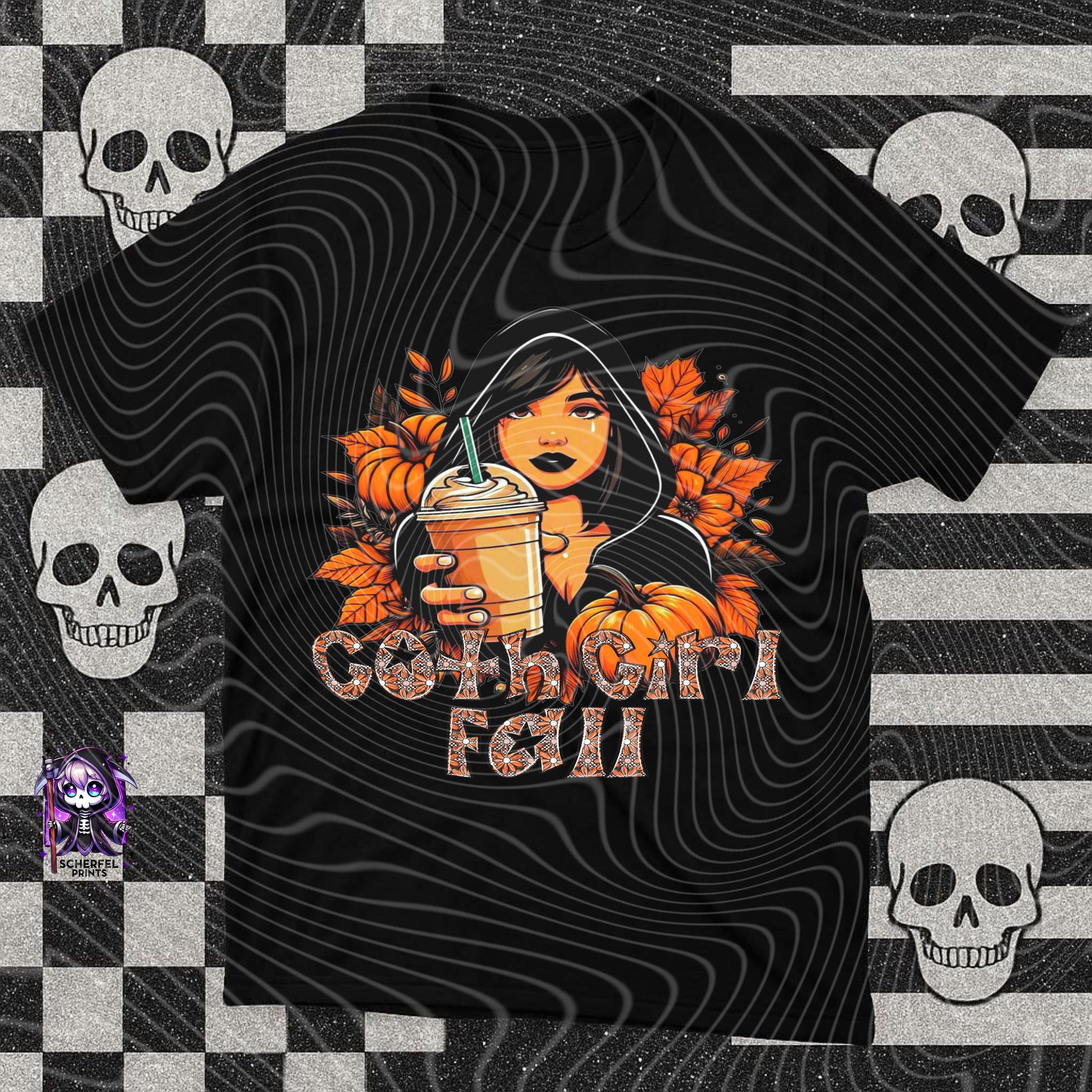 Goth Girl Fall – Coffee & Pumpkins PNG (Digital Download)