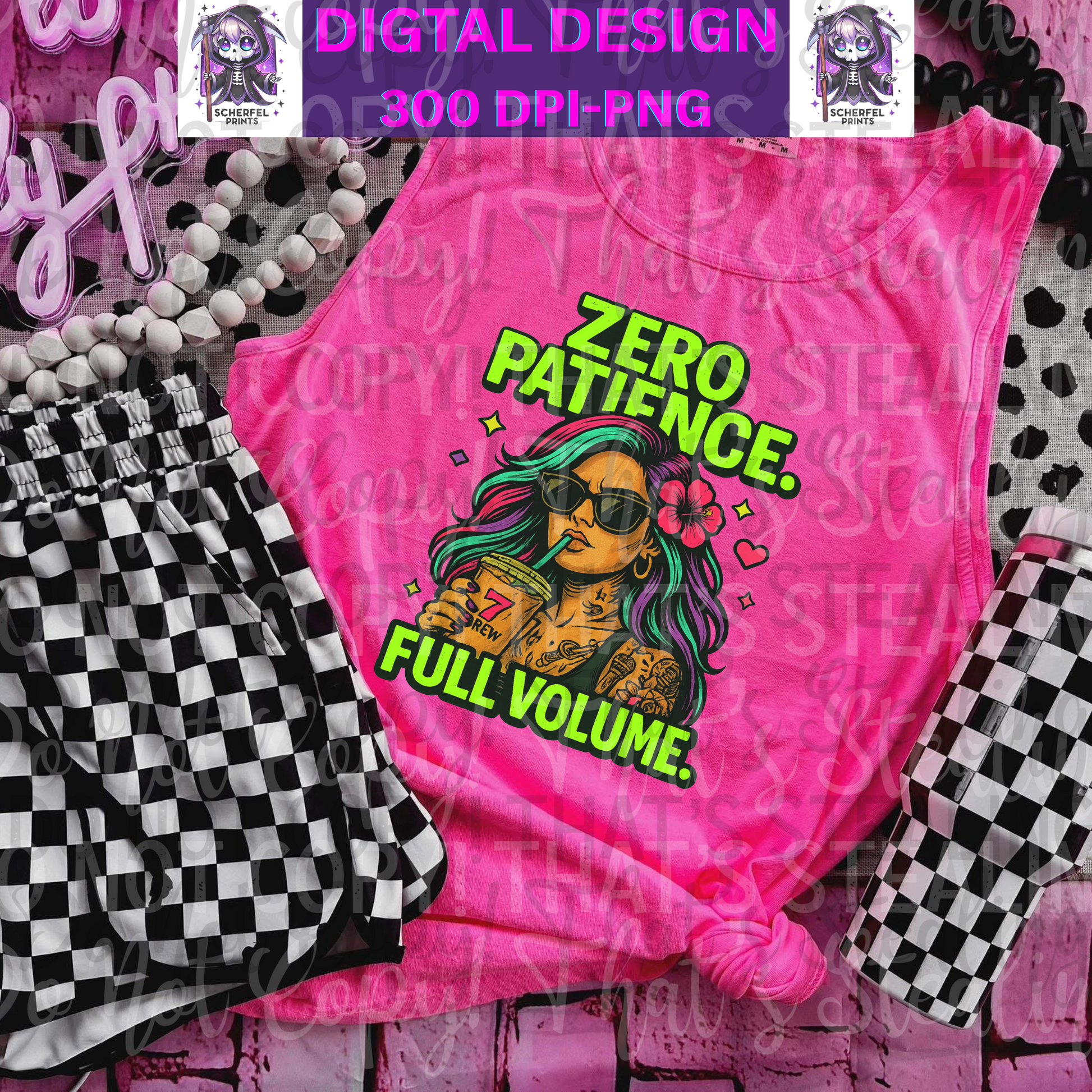 💅🏼🔥 ZERO PATIENCE. FULL VOLUME. PNG | 300 DPI DIGITAL DESIGN 🔥💅🏼