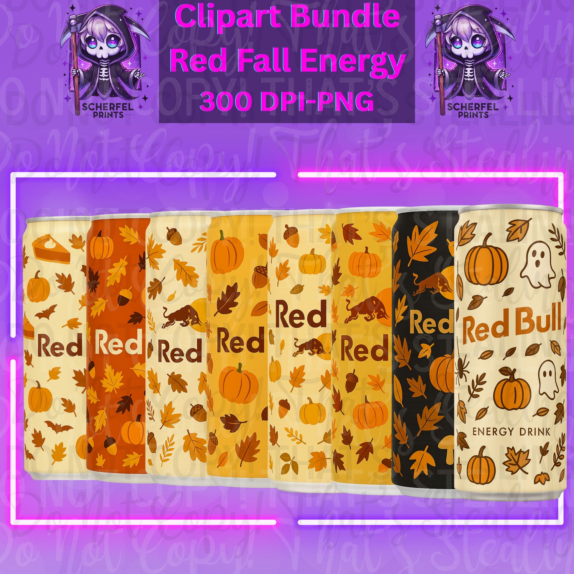 Perfect for seasonal sublimation designs, digital crafts, scrapbooking, and more—each can is styled with autumn vibes and inspired by popular energy drink branding.